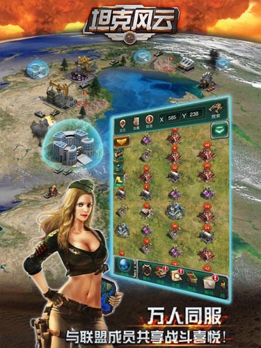 打造庞大的装甲师团当然离不开源源不断的资源补给。在《坦克风云》中你能够指挥军团攻打玩家,疯狂掠夺他们的资源,让你感受征服的快感。此外除了传统COC类游戏玩法外,《坦克风云》更准备了庞大的世界地图供你探索与征服。