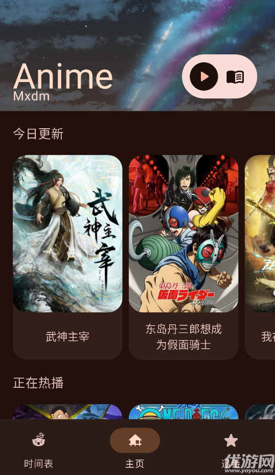 1、下载安装并打开Anime,在首页中有众多动漫推荐。